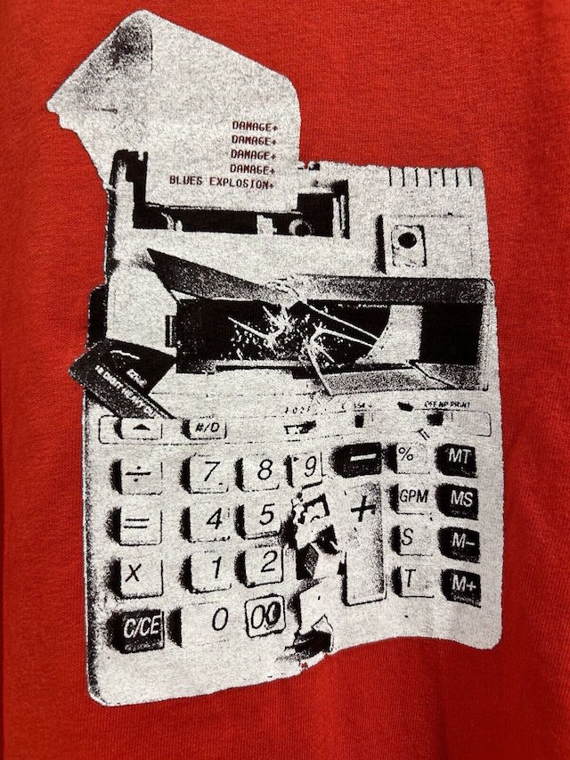 | Blues Explosion Damage shirt, also available with European tour dates and US tour dates on the back. |
