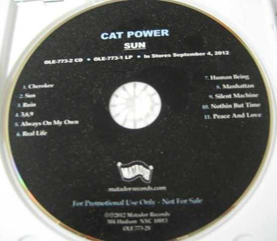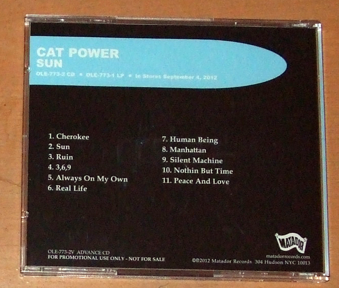 | Promotional CD edition of Cat Power – Sun issued in regular CD album case with rear artword only. Judah Bauer is credited with ‘Break Arrangement’ on Cherokee and plays guitar on both Cherokee and Ruin.