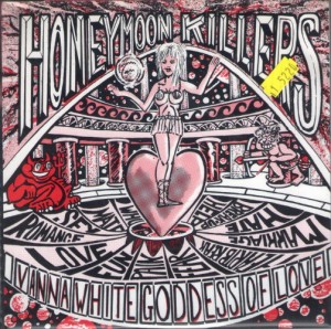 | Honeymoon Killers pink vinyl single in wraparound sleeve with white paper die-cut inner sleeve. Issued on blue, green, grey, pink, purple and white vinyl.
