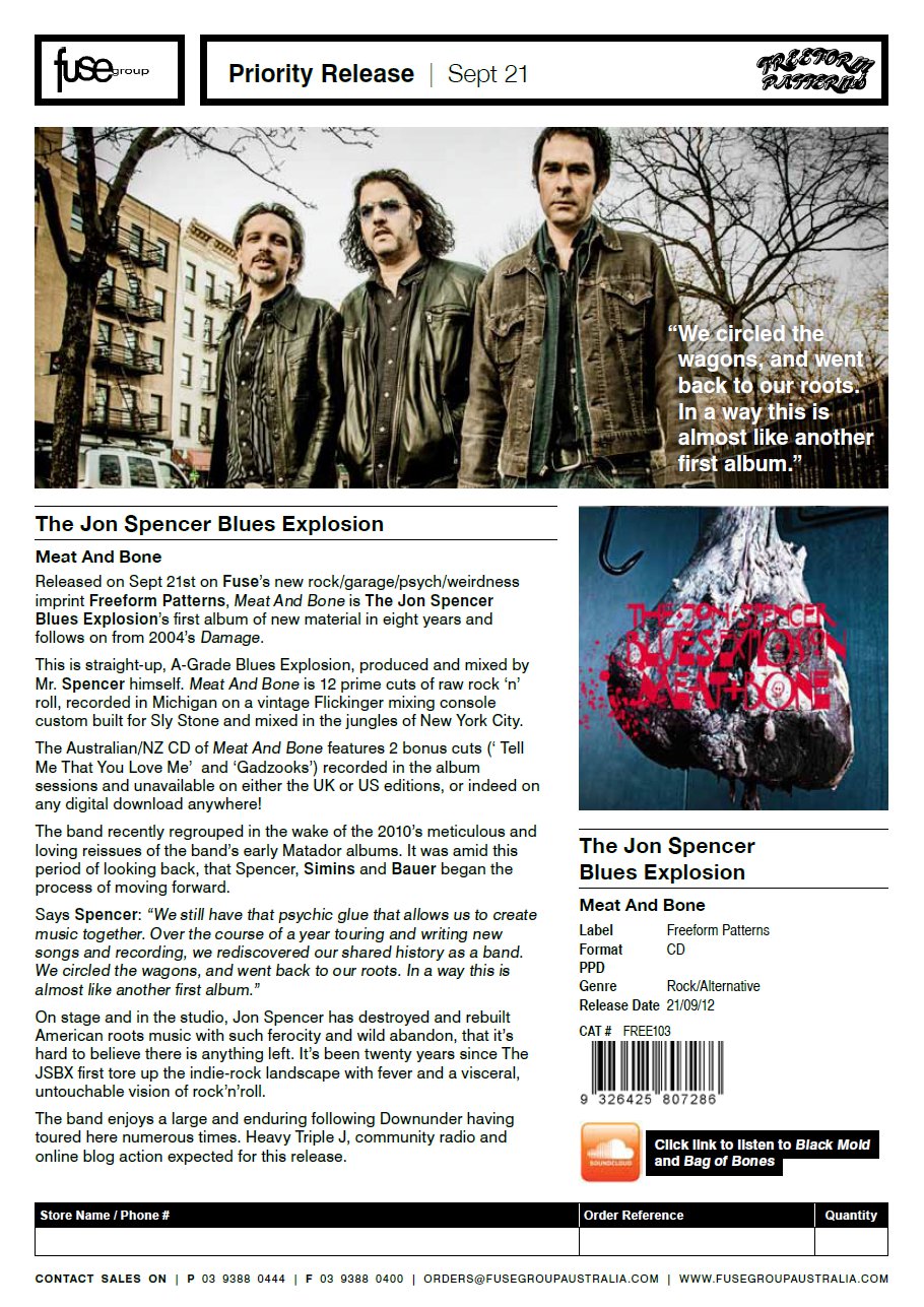 The Jon Spencer Blues Explosion – Meat and Bone (PRESS RELEASE, AUSTRALIA)