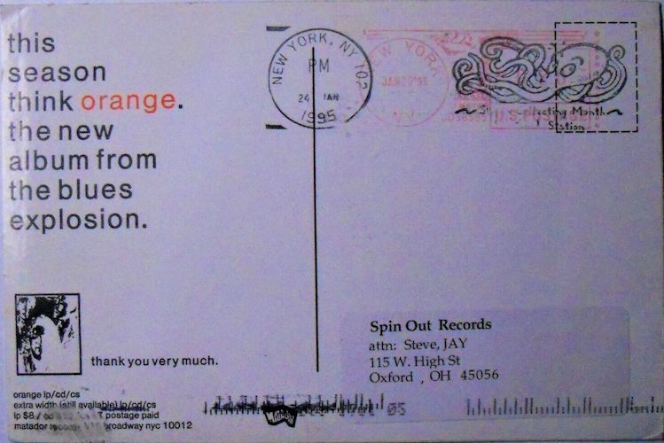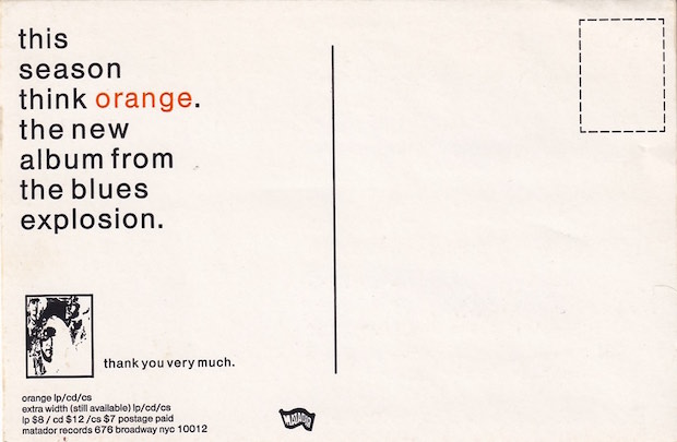 | 4″ by 6″ promotional postcard/sticker issued by Matador Records to promote the release of The Jon Spencer Blues Explosion album Orange. |