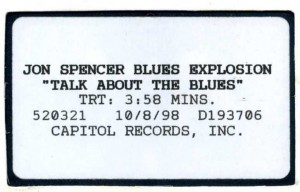 *catalogue number unknown but the video cassette label does carry the numbers ‘520321’ and ‘D193706’ This single, taken from the album Acme, was issued on CD and 12″ in the US and on CD, 12″ and 7″ in the UK. The song Talk About The Blues was written as a direct response to a Rolling Stone review of Now I Got Worry and Q&A with Jon Spencer. The review asked “what right young, white boys have to play the blues, the scribe opined that “Spencer’s faux backwoods drawl verges on minstrel-show insult.” What actually sent Spencer off, however, was a tamer Rolling Stone Q&A, in which he answered earnest queries about how a New Hampshire boy fresh from sneeing punk deconstructionists Pussy Galore fell for the authentic blues music of Hound Dog Taylor and Mississippi Fred McDowell. After the interview – perhaps feeling his authenticity in question, perhaps frustrated that the soul, funk and hip-hop sides of his band get overlooked because of the name Blues Explosion – Spencer sat down and wrote “Talk About The Blues.” [This text is from a CMJ New Music Monthly article titled ‘Acme Blues Explosives, INC’.] The song lyric features a the line “I do not play no blues, I play rock and roll” which is a reference to the album I Do Not Play No Rock ‘n’ Roll by Mississippi Fred McDowell. In a later Rolling Stone interview Jon Spencer said “I’d rather be known as a rock & roller. I mean we don’t really play blues. How would you describe it? It’s the exact opposite of Mississippi Fred McDowell. He’d always say, “I do not play no rock & roll.” He had a record called that, too. ” |