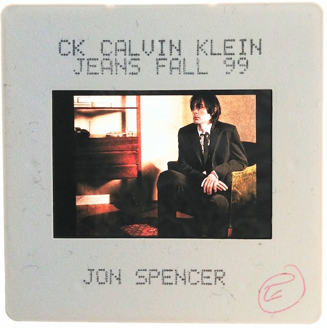 | Slide showing one of the Jon Spencer images from the Calvin Klein adverts.