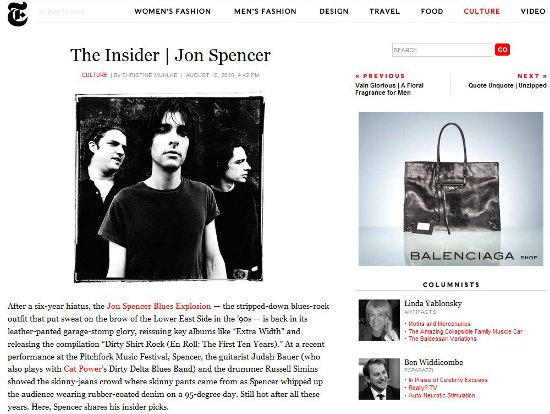 Jon Spencer – NYtimes.com: The Insider | Jon Spencer (PRESS, US)
