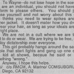 | These are the letters Julie Cafritz read from the letters page of Maximum RockNRoll issue 28 as the lyrics to the song HC Rebellion released on the Feel Good About Your Body 7″ single.
