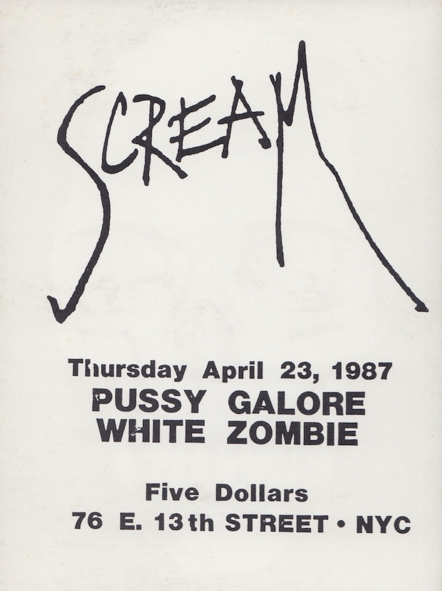 Pussy Galore show at Scream at the Cat Club, 76 E 13th St, New York, NY 10003, US with White Zombie on 23 April 1987.