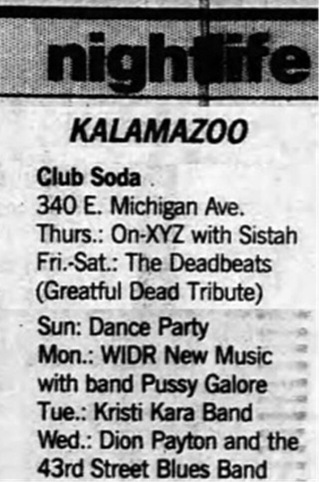 Pussy Galore – Club Soda, Kalamazoo, MI, US (31 July 1989)