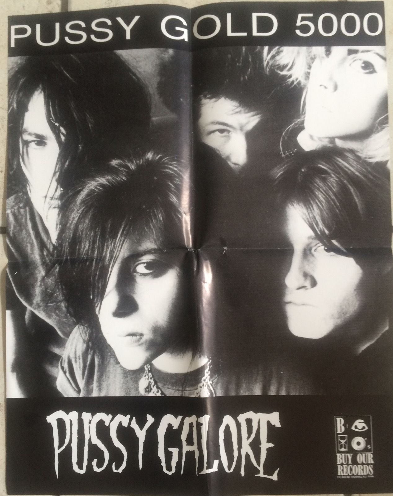 | Poster measuring 17″ x 20″ issued by Buy Our Records for Pussy Gold 5000 by Pussy Galore, featuring the band photo by Karl Peterson and logo from Groovy Hate Fuck.
