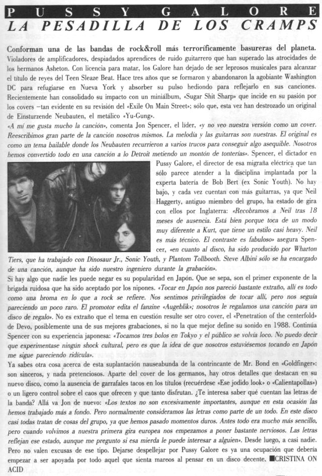| Pussy Galore article from February 1998 issue of Ruta 66.