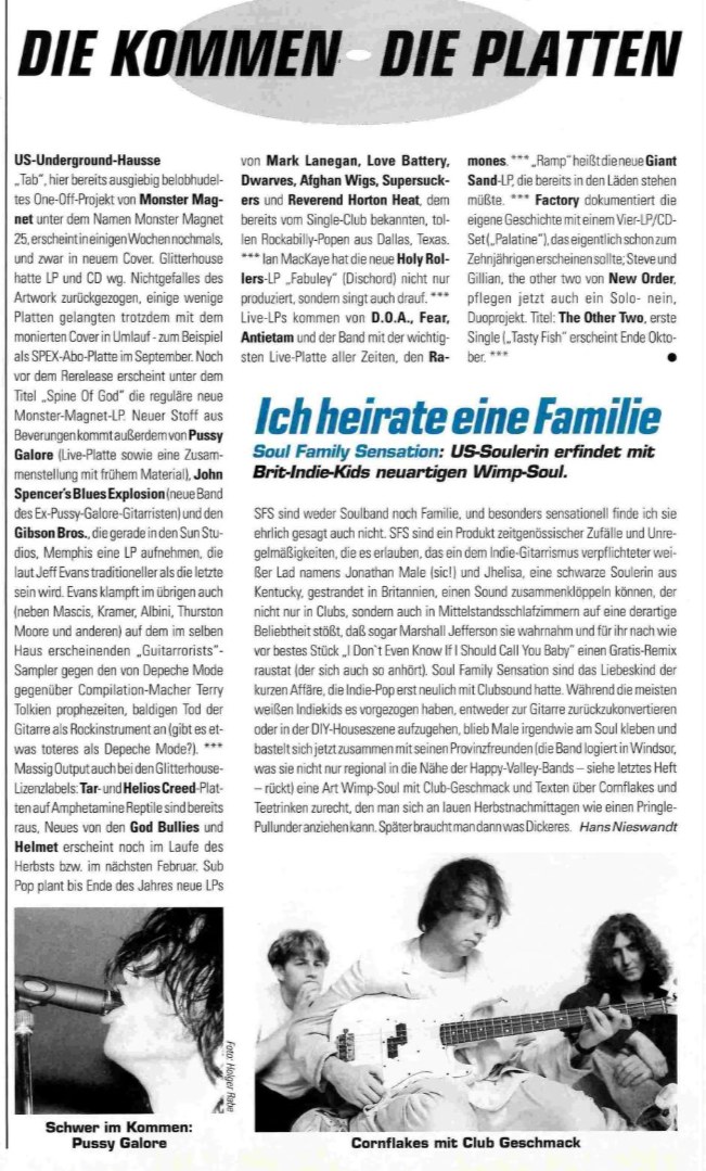 | German-language news page mentioning Pussy Galore and The Jon Spencer Blues Explosion. |