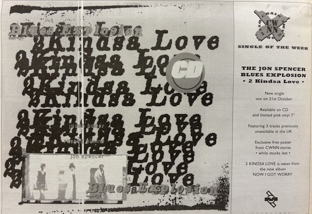 | Advert for The Jon Spencer Blues Explosion single 2Kindsa Love Now I Got Worry.