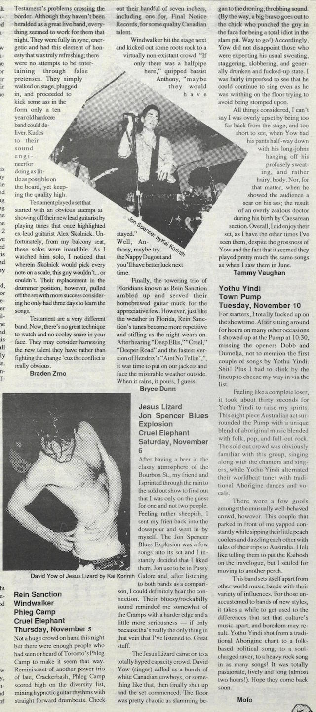 The Jon Spencer Blues Explosion show at the Cruel Elephant, Vancouver, Canada with Jesus Lizard (headline) on 6 November 1992.