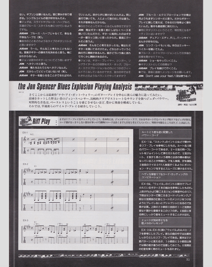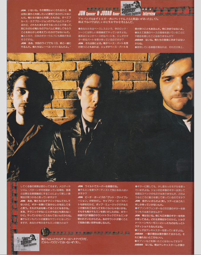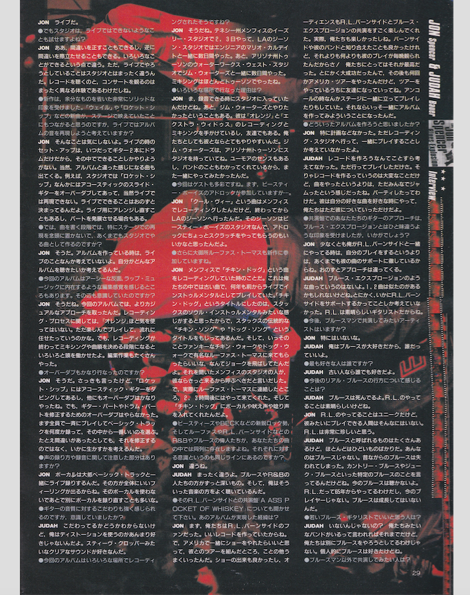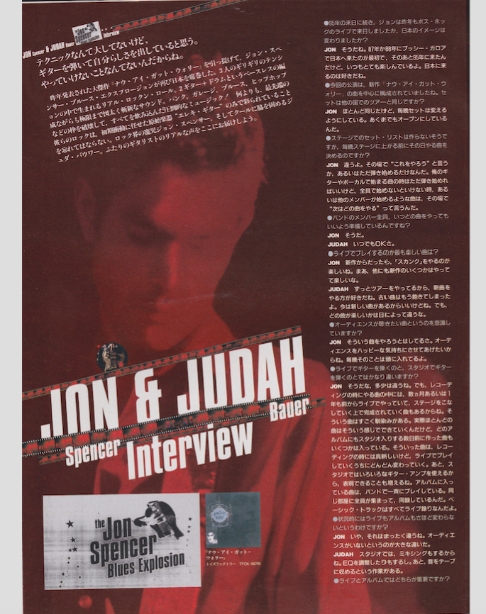 JUDAH: There’s no song that sounds like Blues Explosion. Maybe there are one or two songs that are similar. Anyway, I was just thinking about how to support R.L. Burnside. R.L. is a great guitarist. Are there any blues artists you’d like to perform with in the future?