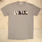 | The Jon Spencer Blues Explosion Meat + Bone-era shirt featuring the lettering by Elizabeth Carey Smith and band portrait photos from the album. |