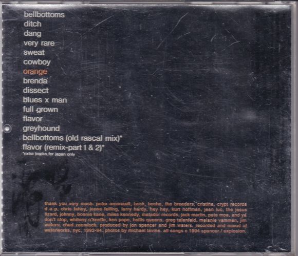 | Produced by Jon Spencer and Jim Waters Recorded and Mixed at Waterworks, NYC, 1993-94 All songs c 1994 spencer/explosion later editions of the album give the writing/publishing credits as follows: 01. Bellbottoms 02. Ditch 03. Dang 04. Very Rare 06. Cowboy 07. Orange 08. Brenda 09. Dissect 10. Blues X Man 11. Full Grown 12. Flavor 13. Greyhound 14. Bellbottoms (Old Rascal Mix) 15. Flavor (Remix – Part 1 & 2) |