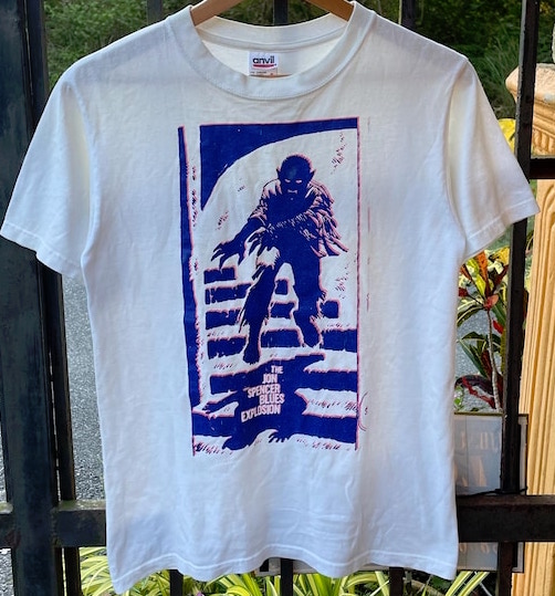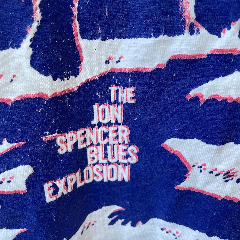 | The Jon Spencer Blues Explosion shirt featuring part of the Plastic Fang cover artwork by Chip Kidd. |