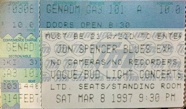 The Jon Spencer Blues Explosion show at The Vogue, Indianapolis, IN, US with Doo Rag on 8 March 1997.