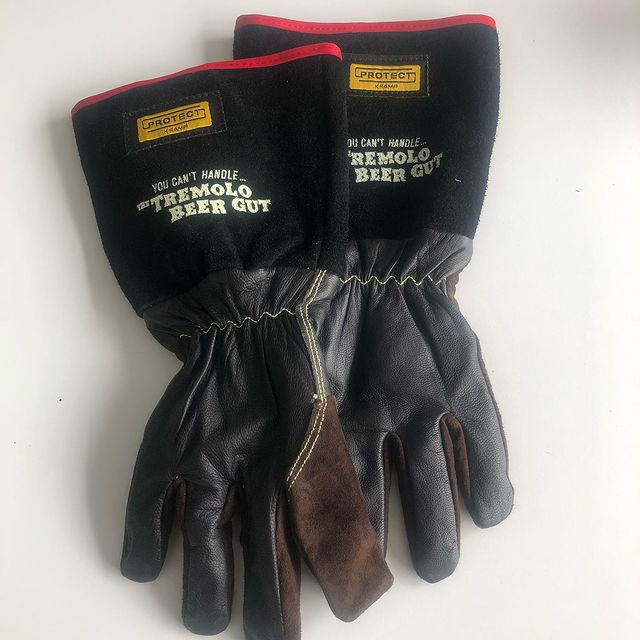 The Tremolo Beer Gut BBQ / Welding gloves.