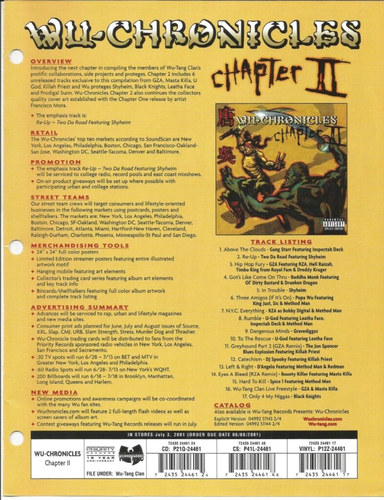 | Press information for Wu Chronicles Chapter II featuring Greyhound Pt 2 (GZA Remix) originally released on The Jon Spencer Blues Explosion – Experimental Remixes album. |