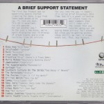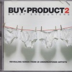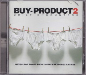 REAR COVER: “The first Buy Product was so appetizing people started clamoring for more. A guy from Idaho even wrote us to say: “I love you guys. this CD is excellent. You are awesome. Put out another one.” So for just a few bucks, we’re again displaying over 70 minutes of album tracks and b-side rarities from 20 artists for you (and the guy in Idaho). It’s called Brief Encounters this time. And it’s a great collection of single ready-to-wear numbers that still comes with the caveat that you consider going out and buying these artists’ full albums. But since you’re getting another cheap thrill, we feel it kinda evens out, Thus, Buy Product.”