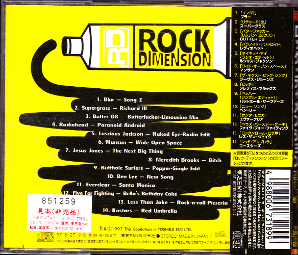 | 01. Blur – Song 2 02. Supergrass – Richard III 03. Butter 08 – Butterfucker (Limousine Mix) 04. Radiohead – Paranoid Android 05. Luscious Jackson – Naked Eye (Radio Edit) 06. Mansun – Wide Open Space 07. Jesus Jones – The Next Big Thing 08. Meredith Brooks – Bitch 09. Butthole Surfers – Pepper (Single Edit) 10. Ben Lee – New Song 11. Everdear – Santa Monica 12. Five For Fighting – Bella’s Birthday Cake 13. Less Then Jake – Rock-n-roll Pizzeria 14. Kostars – Red Unbrella |