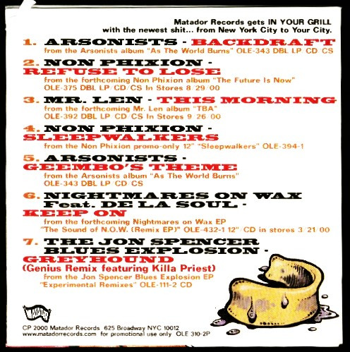 | 01. Arsonists – Backdraft 02. Non Phixion – Refuse To Lose 03. Mr. Len – This Morning 04. Non Phixion – Sleep Walkers 05. Arsonists – Geembo’s Theme 06. Nightmares On Wax – Keep On 07. The Jon Spencer Blues Explosion (feat. Killah Priest) – Greyhound Pt 2 (GZA Remix) |