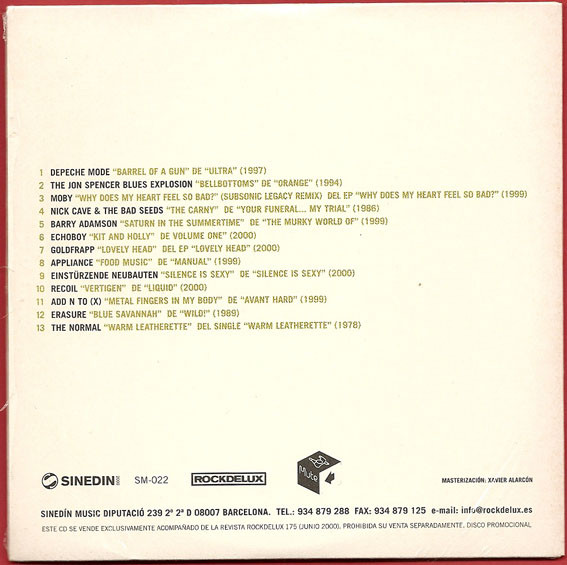 | Compilation CD in card sleeve given away with Rockdelux magazine #175 featuring The Jon Spencer Blues Explosion track Bellbottoms from Orange, this would have been issued to promote the Mute reissues. | |