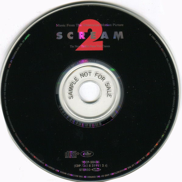 Japanese edition of Scream 2 soundtrack issued in regular album case, this version includes an enhanced CD section which did not appear on the UK and US editions. The Total Film cover mount CD did feature an enhanced section although the content could be different to what appears on this release.