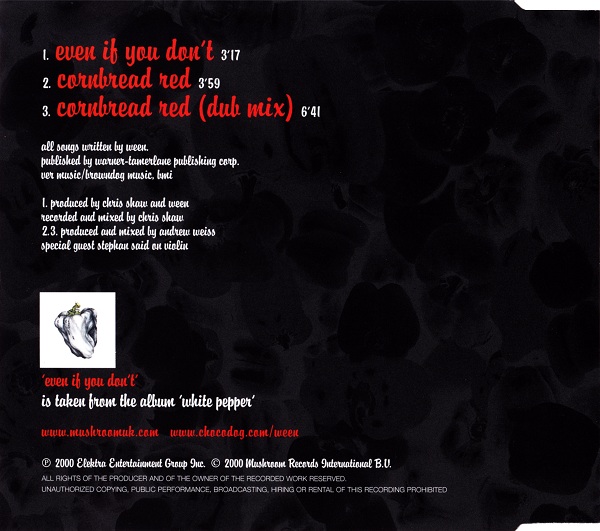 01. Even If You Don’t Writers: Ween Published: Warner-Tamerlane Publishing Corp/Ver Music/Browndog Music, BMI. Produced: Chris Shaw and Ween Recorded/Mixed: Chris Shaw Run Time: 3:17 02. Cornbread Red 03. Cornbread Red |