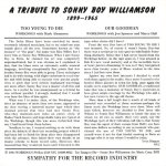 “The Delta blues have been enriched by many extremely talented musicians, but to my mind one man stands above all the rest. Sometimes known as “The Menace” or “The Goat”, his name was Rice Miller, but I knew him as Sonny Boy Williamson. When I met Sonny Boy in Paris he claimed his art was completely unpremeditated. but it was obvious, as I explained to him, that his blues were an extremely subtle musical language, involving exceptionally fine points that few besides Sonny Boy were able to grasp. These techniques had to do with timing, with slight varations in vocal timbre and with being able to execute very precise gradations in pitch that were neither haphazard waverings nor mere effect. Sonny Boy was a master of all this and more. As a stylist he was unsurpassed; as a lyricist he was without parallel. I strongly doubted that I would hear the likes of him again.