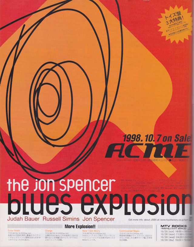 | Poster measuring 51.5cm x 72.8cm and advert for the Japanese release of The Jon Spencer Blues Explosion album Acme. |