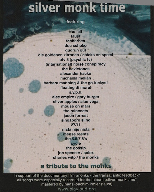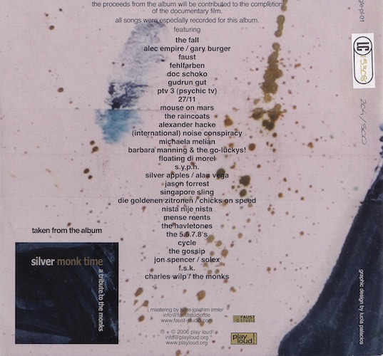 The single is currenltly sold-out but there may be a second pressing in the future. Update [March 2009]: The “possible second pressing” text has been removed from the Play Loud site. Both this single and the compilation album are to accompany a feature film which will be available on DVD in the future. “HOT NEWS: Alec starts collaborating with Russell Simins (drummer with Jon Spencer Blues Explosion) and Gary Burger (original member of The Monks)! They start recording a new version of the song “Black Monk Time” for a documentary film about The Monks in New York middle of January 2006… Alec:” I am very excited about this! The Monks have spearheaded what any credible musician in the scene is about right now. To have the chance to do a project like this is just mind blowing. I heard The Monks first time on John Peel’s radio show a long time back. And they changed the way I looked at music ever since. Their attitude was dramatically different to anything I had heard up until then. I’m on a high! Great!” – digitalhardcore.com |