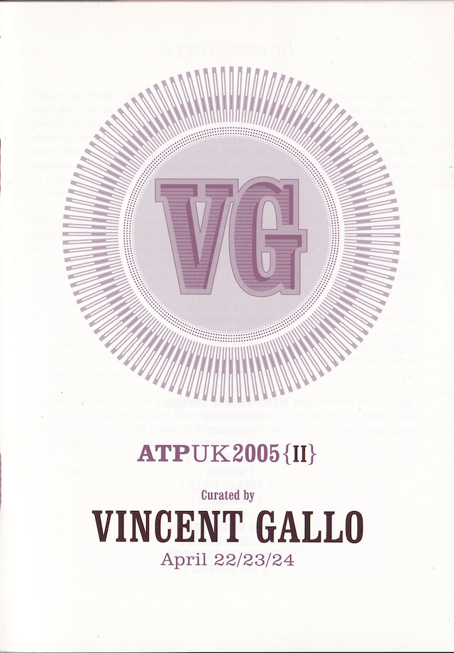 I should note that I have not been drinking on the tour so far. Well, not really. It is a long trip and The Hives shows are short and over with so early, so it does take some doing not to drink. But so far I have been doing a good job of it. Except for tonight. I give myself permission to get loaded. Which is exactly what I do. Hang out with Toby, watching Peaches, meeting strange people etc. Peaches is very good and has exactly what The Hives are missing: Sex and Menace. Afterwards I congratulate her on her set, especially the songs in which she plays gtr. She says that Julia Cafritz, from Pussy Galore, was a big inspiration! The evening starts to drag on. I meet Mr. Vincent Gallo, the current ATP curator. He is small, kinda elf-like, but very nice. Seems nervous. I thank him for the invitation and then beat it. The next day is rough. I am very hungover. – Jon Spencer (Stool Pigeon, 2005),