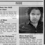 “All the Blues That’s Fit to Print” The Daily Explosion Late Edition Vol. UP!…..No. 001 Copyright(c)2004 Blues Explosion New York, NOVEMBER BX, 2004 ONE DOLLAR Hot Gossip Destroys U.N. Kofi Annan’s Head Explodes in tense stand off with rock band Blues Explosion Video Delivers Shock and Awe by R.W. Fatbody, JR New York – In what can only be described as a tough day for the United Nations, the Blues Explosion presented their new video, Hot Gossip, to the U.N. General Assembly. Met with shock and awe by the governing body, the video offers an ominous view of the future and one groovy motherfucking beat. While Hot Gossip played to a stunned hall, UN Secretary-General Kofi Annan suffered a rare instance of spontaneous combustion in humans when his head suddenly burst like an over-ripe tomato, showering delegates with his over-wrought, international peace-keeping brain. Speaking to reporters after the incident, Blues Explosion front man Jon Spencer expressed deep concern for the former UN Secretary. “The blues is still number one!” he said. “Can ya dig my band?” It certainly did not help matters that rapper Chuck D also appears in the video. Mr. D is an angry African-American who has avoided jail despite the best efforts of a vicious industrial-prison complex that thrives on incarcerating black males, and who has fashioned a respected career as a liberal radio pundit. Said one senior American diplomat who asked not to be named, “That’s really sticking it up whitey’s ass.” Mr. Spencer, who reportedly claimed “mission accomplished” while wiping bits of Mr.. Annan’s frontal lobe off of his pawnshop guitar, strongly denied that “head-popping Kofi” was his goal, although he did admit, “for today, the major rocking is over.” Reaction from the international body was one of admiration for the famous rock band. “Basically they just blues exploded him,” said one observer of the cerebral fireworks. “It was pretty cool.” Mr. Spencer, an evangelical rock ‘n’ roller who has mentioned Jerry Lee Lewis as his favorite popular Continued on Page A3 Rock ‘n’ Roll Terrorist Plays DAMAGE at Energy Summit by Nicholas D. Whackoff WASHINGTON – Muckity-mucks from the world’s energy companies were aghast when a self-proclaimed “rock’n’roll terrorist” broke into their summit at a topless bar and began blasting Damage, the new CD from New York’s Blues Explosion. The meeting, convened at the Juicy Lucy, a go-go bar that one patron described as “a drug filled sleaze pit, like Satan’s private club-house,” was attended by top-officials from Exxon, Chevron, Halliburton and Major League Baseball as well as several professional wrestlers disguised as oil sheiks. Also in attendance was singer Andre Williams, who “came for the ladies.” This year’s summit, titled “Choosing the Next Iraq, Why Not Texas?” had been shrouded in secrecy until hemorrhoid-faced Republican lap dog Robert Novak leaked the information to a Daily Explosion reporter who had obtained photos of Mr.. Novak wearing a black lace bra and buggering a donkey. Dick Johnson, 27, was jubilant as he was left out of the meeting by local police. “Ya shoulda seen them!” he shouted as the police repeatedly pounded his head into the Juicy Lucy parking lot, lacerating his one youthful face with empty crack vials. “Fuckin’ old dudes, they all look like Mr.. Burns,” he added with some difficulty, referring to the evil nuclear power baron on television’s The Simpsons. Energy company officials looking to Continued on Page C2 For Home Delivery Call 1-8000-Blues-Ex [Photo of Jon Spencer and Chuck D.] Gaza Gaza hey! Punk Rock Invades Palestine THE UGLY FACE OF POP MUSIC Many Teenagers are left scarred for life due to unsanitary piercings and lame tattoos. by Paul Drugman PALESTINE – In an impoverished settlement here, the strains of barre chords have replaced gunfire as the day;s soundtrack. Everywhere, the clanging sounds of electric guitars playing old American chestnuts like “Beat on the Brat” and “Sonic Reducer” can be heard as teenagers with Mohawks take turns piercing each other’s noses with the pins from unexploded grenades. And in the evening, refugees gather around dusty old television sets for the nightly broadcast of the Blues Explosion’s new video, “Hot Gossip.” “We are looking forward to a time when there are no more suicide bombers, just Suicide records,” said one optimistic youth, who took the opportunity to say that he was looking for a rare cassette-only Suicide bootleg recorded live at CBGBs. “Rock’n’roll is our future!” said another teenage, clutching a copy of the Cramps’ Songs the Lord Taught Us. “I played it for my parents and they defused all of their bombs.” The demand for punk rock has reached a fever pitch, with unscrupulous dealers selling unsuspecting teenagers copies of stoner junk like Dark Side of the Moon and blissed-out California pot head crap like Deja Vu, claiming that it is “the real shit.” The most common swindle involves surplus show tunes and passé Jewish cabaret acts: without much to go on, it is easy to see how these nascent punks high on Israeli airplane glue could confuse the Misfits with The Divine Miss M – that is until they get home and play the record, often on primitive turntables made from coconuts. “Who are these American penis men?” demanded one youth who had been tricked into buying a copy of Rent, the Original Broadway Cast Recording, believing he was getting a raw slab of New York punk. Another young man, sporting a hideously tattooed-portrait of Henry Rollins on his face, was prepared to begin his own personal jihad when he was sold Gigi: The Original Cast Recording thinking he was getting the soundtrack to a film about GG Allin. “What the fuck am I supposed to do with this piece of Continued on Page A5. Insurgent Sharks Battle for Rock Supremacy [Photo] A scene from the “Burn It O