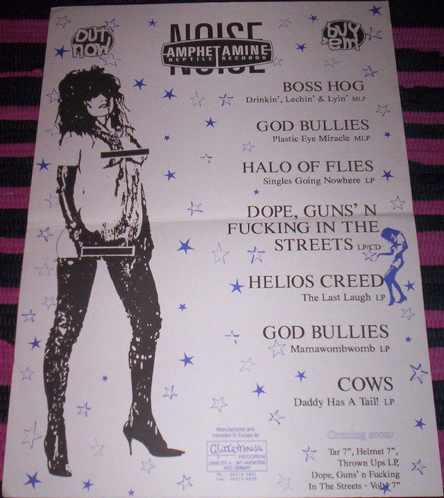 | Amphetamine Reptile Records poster featuring the Boss Hog Drinkin’, Lechin’ and Lyin’ release and cover photo. |