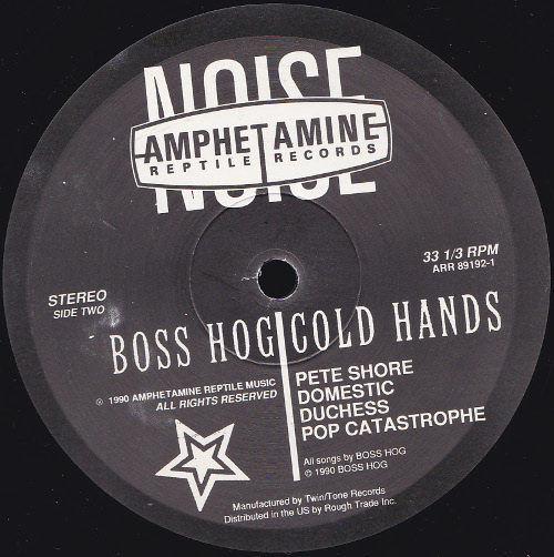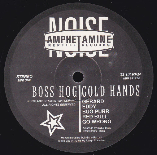 nb. In an NME interview Jon Spencer refers to this album as “Straight Up” which suggests this may have been the original title. The European release had the catalogue number ARR 16/127 rather than ARR 89192-1. Gerard appeared on the Ugly American Overkill compilation. According to an article in New York Magazine titled “She’s The Boss” the cover image is a ‘take off’ of a Cindy Crawford advert for Halston. Boss Hog – Cold Hands [Test Pressing] (LP, US) |