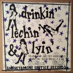 | 2016 reissue of Drinkin’, Lechin’ & Lyin’, on black vinyl with numbered and silk-screened sleeve taken from a lino-cut artwork by Haze XXL, there is also a black circular sticker on the PVC sleeve.