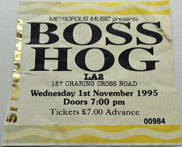 Boss Hog show at LA 2, 157 Charing Cross Road, London, UK with Thee Headcoats and Thee Headcoatees on 1 November 1995.