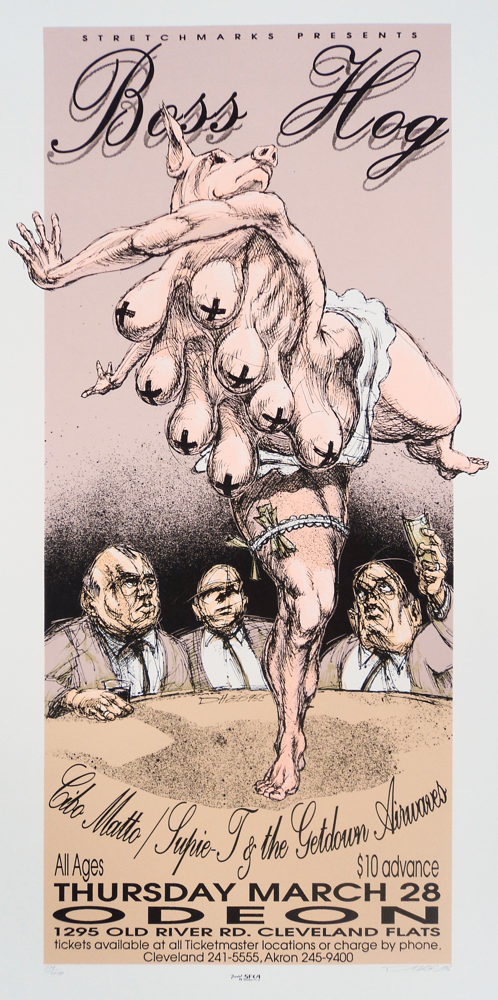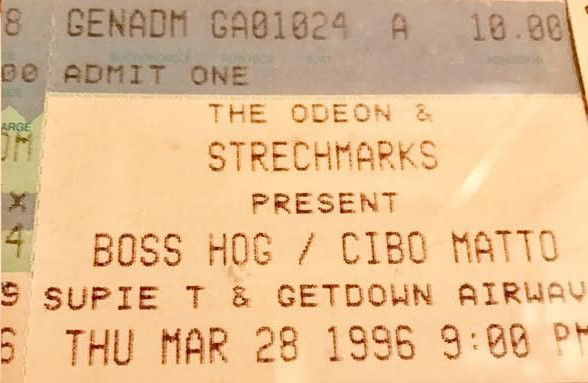 Boss Hog show at Odeon, 1295 Old River Road, Cleveland, OH 44113, US with Cibo Matto and Supie T & the Getdown Airwaves on 28 March 1996.