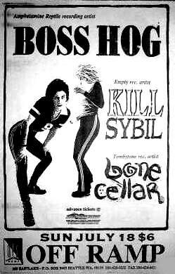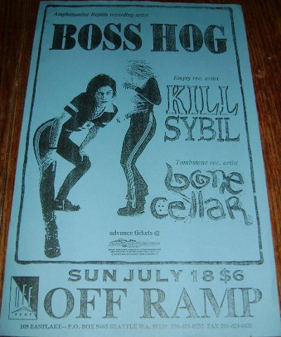 Boss Hog show at Off Ramp, 109 Eastlake, Seattle, WA, US with Kill Sybil and BoneCellar on 18 July 1993.