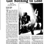 Fiz [#5]: All Roads Lead To Spencer: A Historic Look At The … [3400 Words] (PRESS, US) TEXT: “Fiz: Hazelmyer [Tom Hazelmyer of Amphetamine Reptile Records] told me that all of the records he puts out, Drinkin’, Lechin’ and Lyin’ is one of his all time favourite to just pop on and listen to. Jon: I know he said he really likes the first cut on that record for driving. That’s really a nice compliment.” |