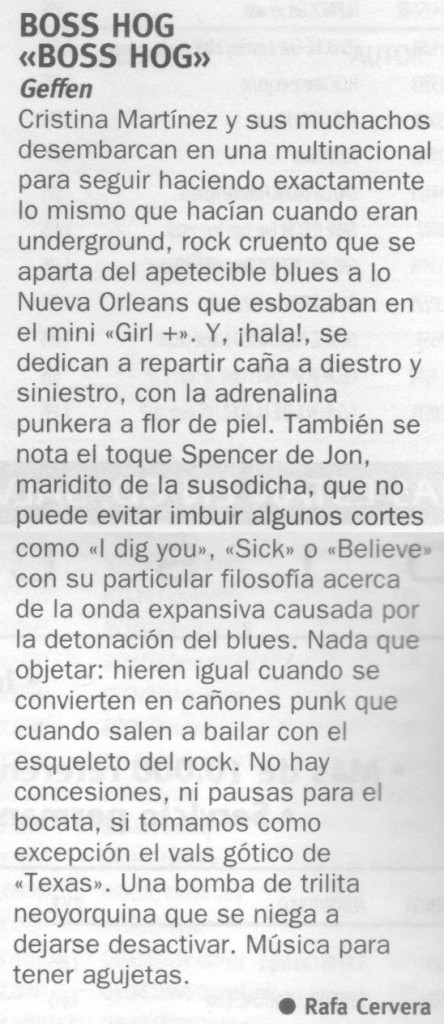 | Short review of the Boss Hog self titled album from Ruta 66. |