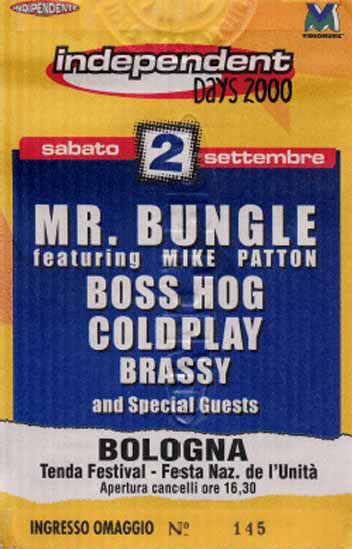 Boss Hog show at Trenda Festival, Bologna, Italy with Mr. Bungle, Coldplay and Brassy on 2 September 2000.