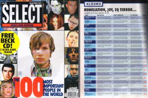 December 1997 issue of Select magazine which came with a cover-mount Beck CD (including the tracks Clock, The Little Drum Machine Boy and Totally Confused).