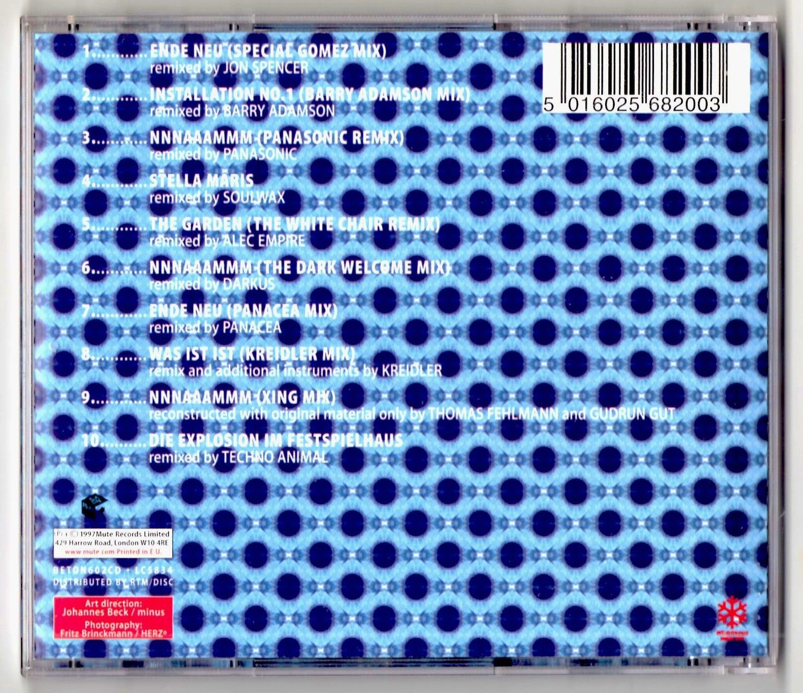 | 01. Ende Neu (Special Gomez Mix) 02. Installation No.1 (Barry Adamson Mix) 03. Nnnaaammm (Panasonic Remix) 04. Stella Maris 05. The Garden (The White Chair Remix) 06. Nnnaaammm (The Dark Welcome Mix) 07. Ende Neu (Panacea Mix) 08. Was Ist Ist (Kreidler Mix) 09. Nnnaaammm (Xing Mix) 10. Die Explosion Im Festspielhaus |