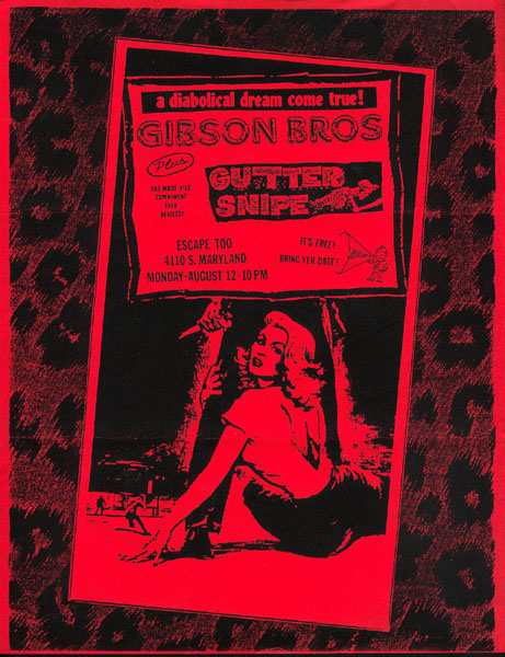 Gibson Bros. show at Escape Too, 4110 S. Maryland, Las Vegas, NV, US with Guttersnipe on 12 August 1991.