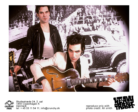 Heavy Trash promotional photo measuring 14 x 11 cm featuring Jon Spencer and Matt Verta-Ray, issued by Crunchy Frog.