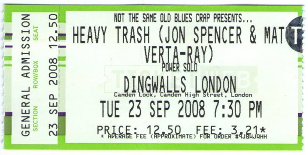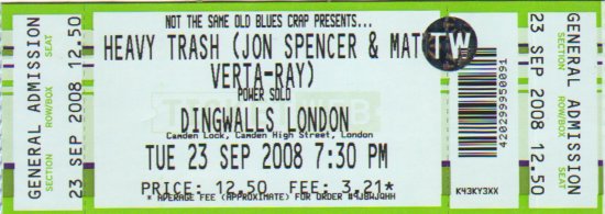 Heavy Trash show at Camden Dingwalls, London, UK with Powersolo (both supporting and performing as part of Heavy Trash) on 23 September 2008.