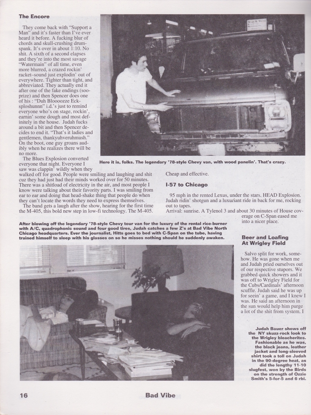 | Article on The Jon Spencer Blues Explosion from Bad Vibe magazine by Herb Hitts (whose writing was used as the sleeve notes for Extra Width).
