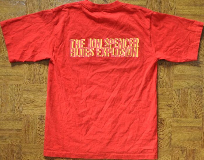 | The Jon Spencer Blues Explosion shirt featuring part of the Fang Visual cover artwork by Chip Kidd. |